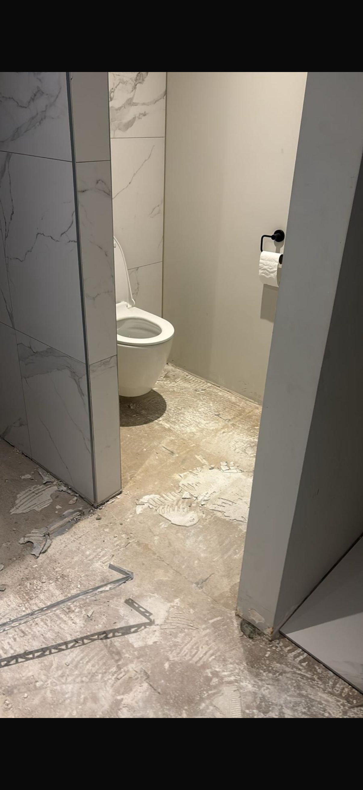 Ik ben begonnen met het verwijderen van het oude tegelwerk en het herstellen van de ondergrond. Vervolgens heb ik de vloer volledig geëgaliseerd zodat alles weer perfect vlak lag. Daarna konden de nieuwe tegels strak geplaatst worden en is alles netjes afgekit voor een waterdichte en duurzame afwerking.